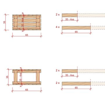 The storage box is very similar to the table. Take the drawing, the nails and your hammer and connect the wood pieces. The drawing shows you all the information, the lengths and where you have to consider overhangs.