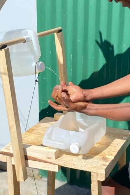 An easy and fun method of handwashing, suitable for both indoor and outdoor use.