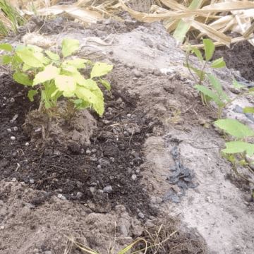 Incorporate (by tilling or plowing) the biochar into the topsoil as deep as the roots will be (-20 cm). This application is great if all of your soil needs structural improvements (sandy soil or clay soil).
