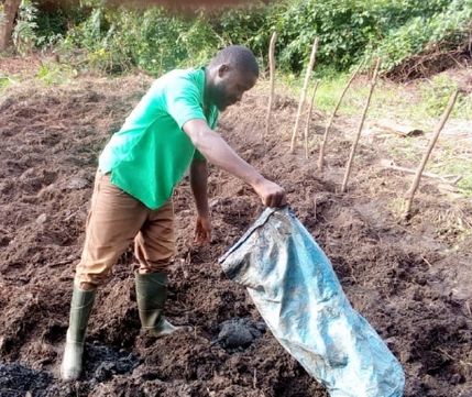 At first it is necessary to charge the biochar before applying it to the soil. Add nutrients e.g. chicken droppings. Examples are fresh or matured manure (from any livestock) and compost. You can also mix them. Pile up your biochar and add water until it leaks out. Mix in your solid nutrient source in a ratio around 1:1.