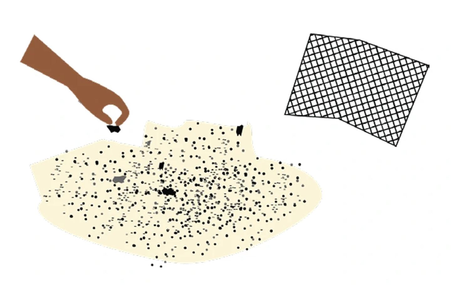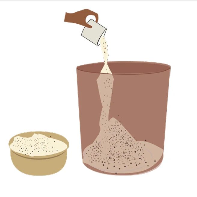 To remove dust by winnowing, slowly pour the sand from shoulder height (you may need a stool depending on your height) onto a cloth on the ground. Any gentle breeze or air movement will blow the dust away while the sand particles fall onto the cloth below.