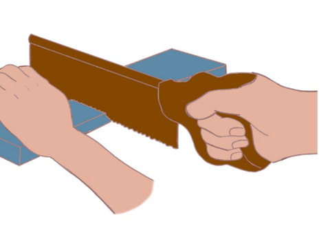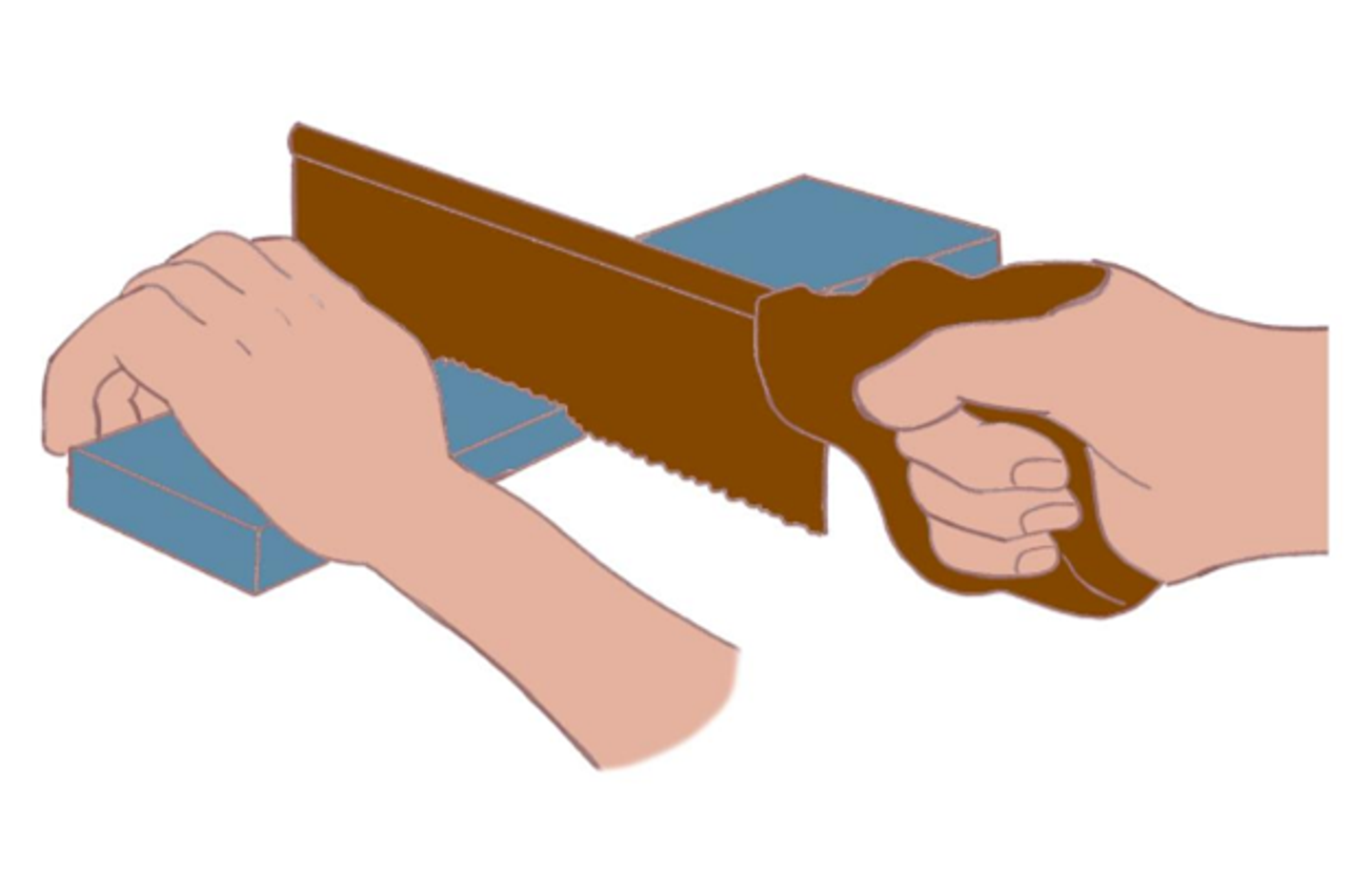 Saw 4 wooden blocks of the same size for stabilisation of the construction. We took 4 blocks à 8cm x 3cm x 5cm.