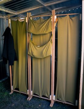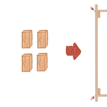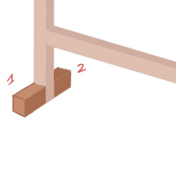 Before the room divider can stand on its own, we have to put some wooden blocks on there, two on each side, which means four in total.