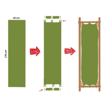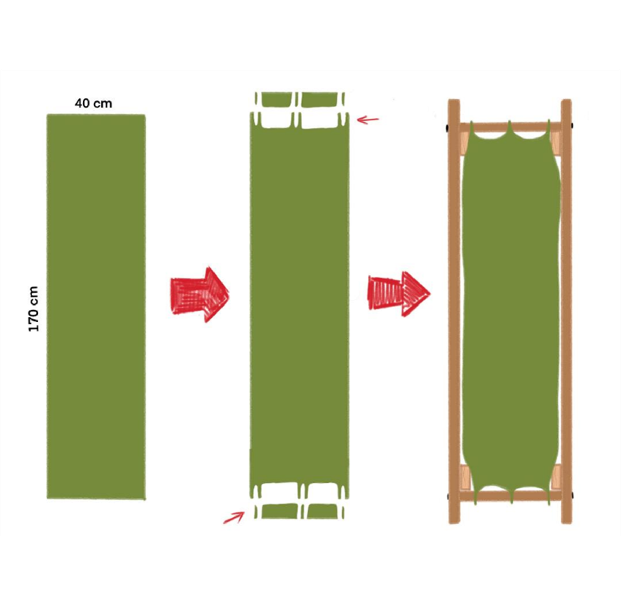 Take the fabric of your choice. Cut the fabric so that it fits in the frame. If you use our measurements, you need 170cm x 40cm.