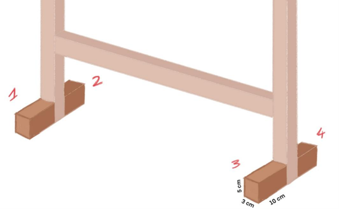Saw 4 wooden blocks of the same size as feet. We took 4 blocks à 10cm x 3cm x 5cm.