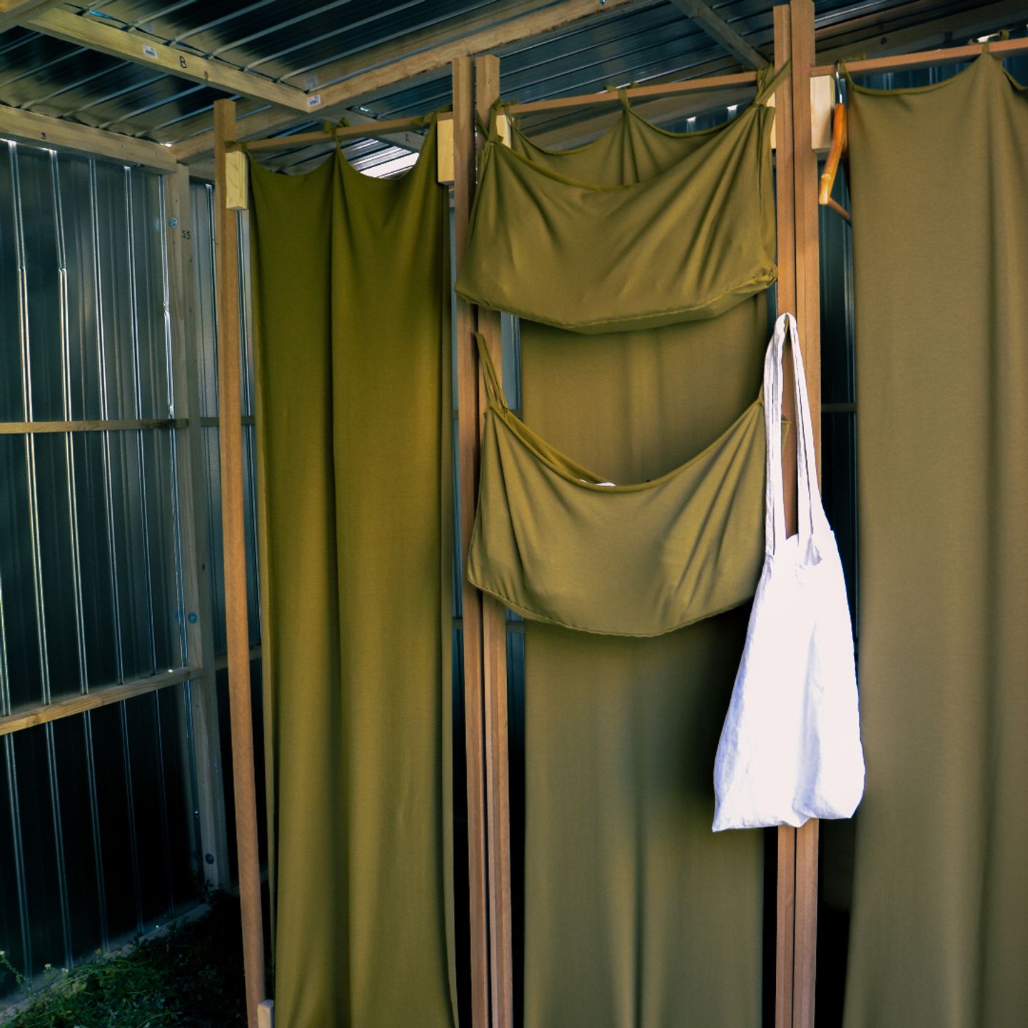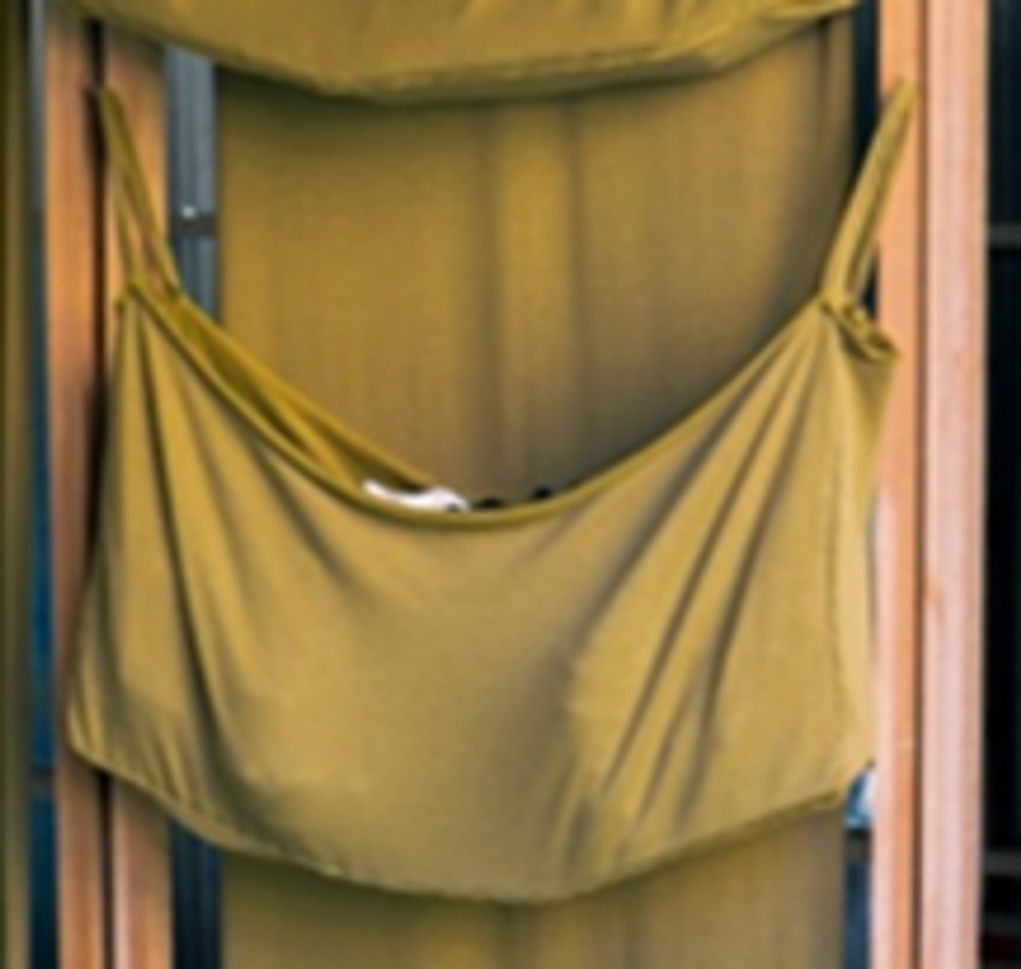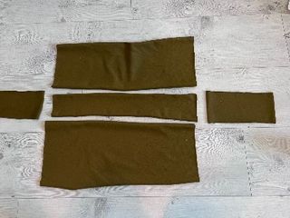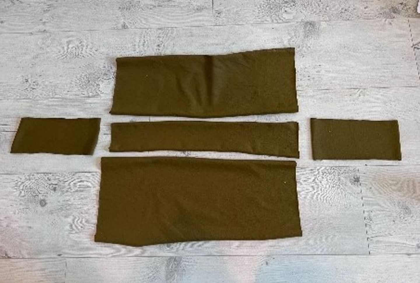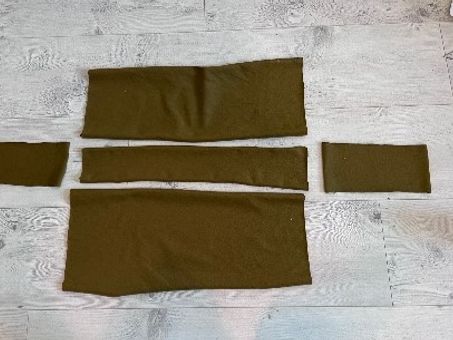 For each pocket you need: -2x pieces of fabric with the measurements: 25cm x 50cm (back & front) -2x pieces of fabric with the measurements: 10cm x 25cm (left & right) -1x piece of fabric with the measurements: 10cm x 50cm (bottom)
