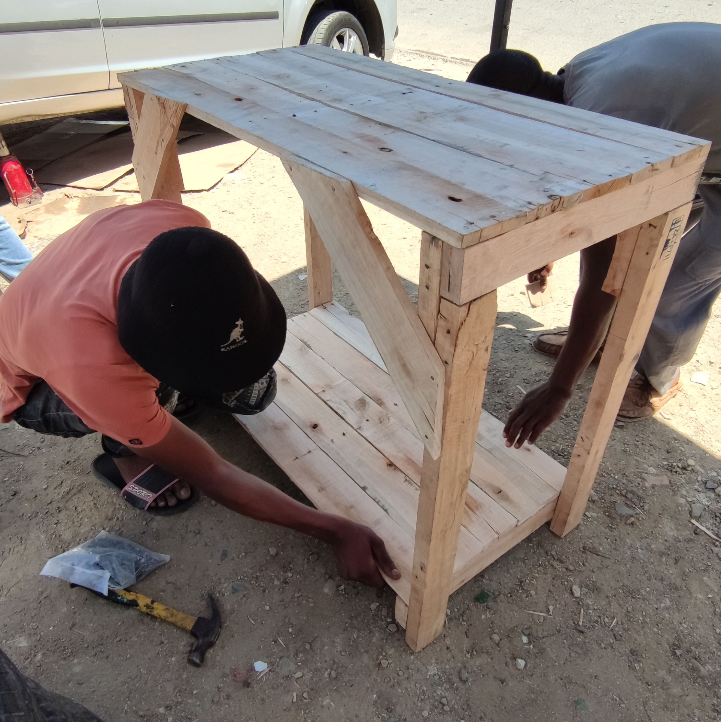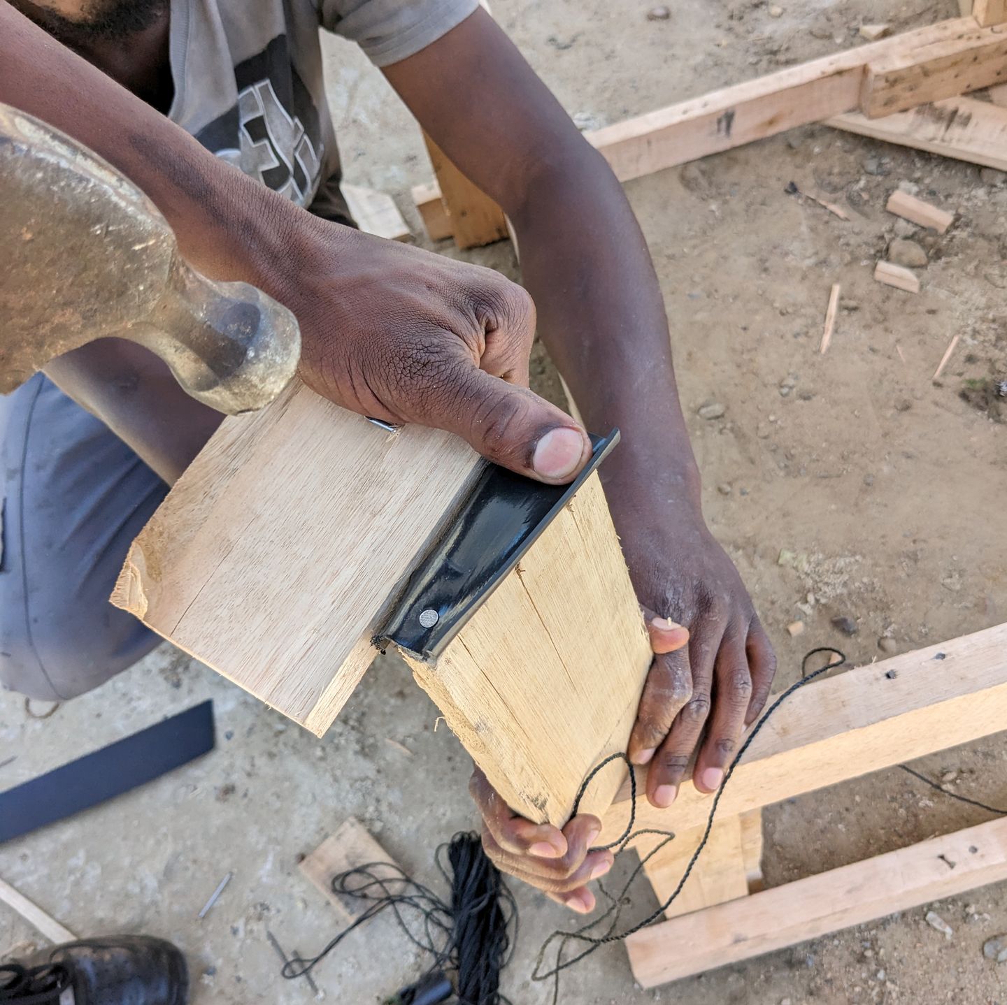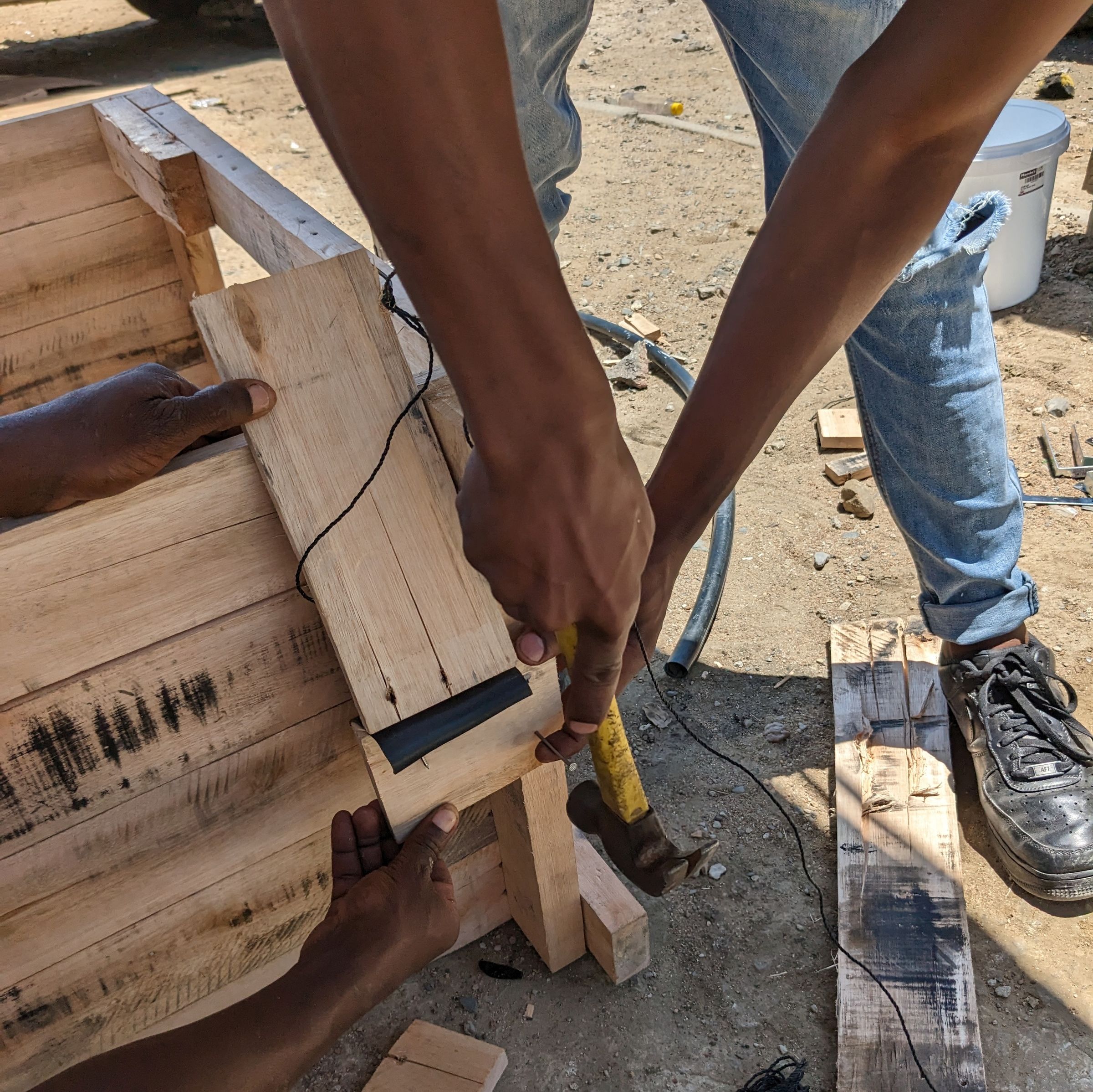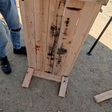For attaching the long legs, we need a plane underground. We took an extra palette, that we had lying around. Again, rather use more than less nails.