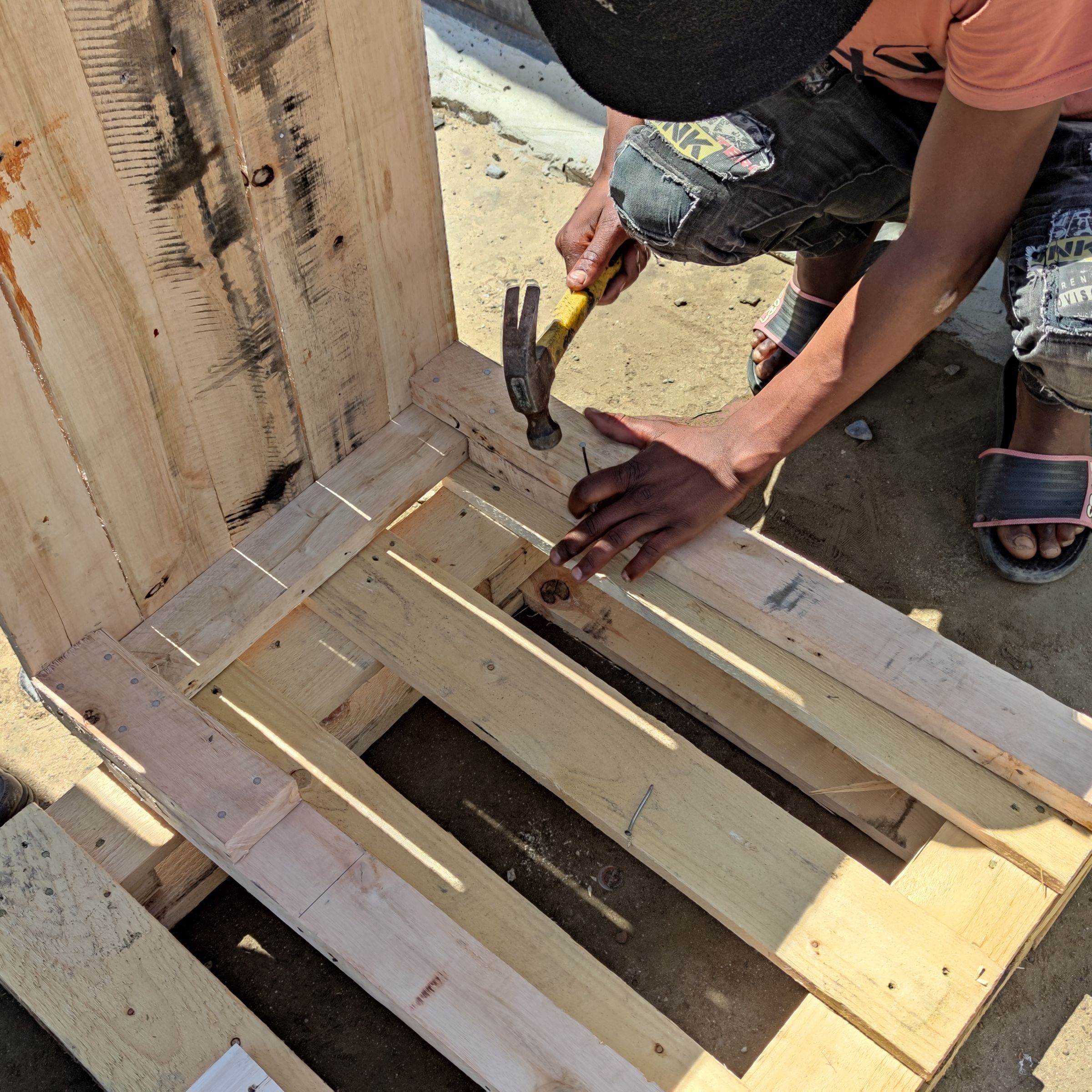 You probably have most of the material already at home. Sourcing the palettes might be the only thing you need to do. We found a nearby industrial plant, that sells old or damaged palettes for a really fair price (R5/each).