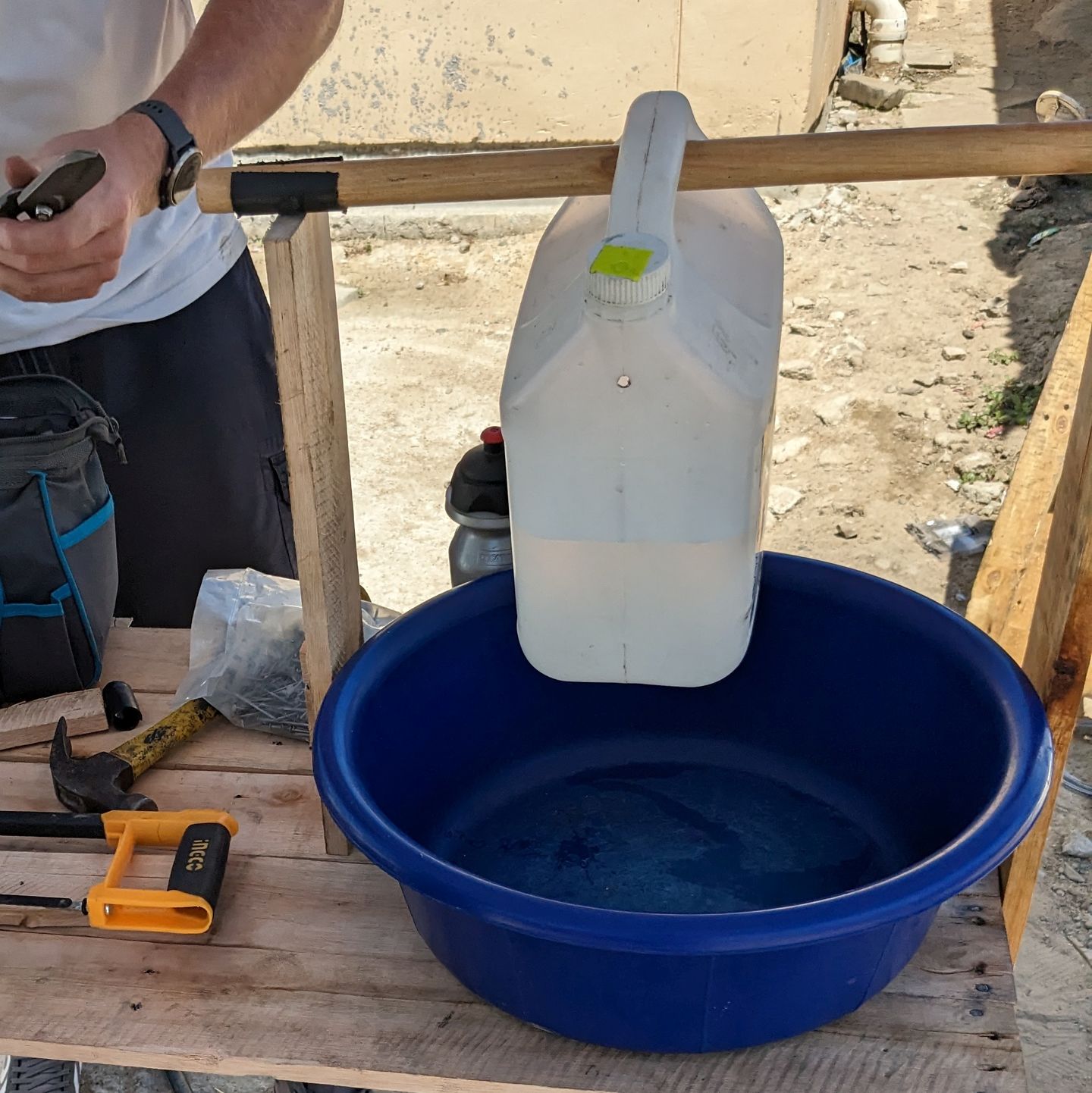 We want the tippy tap to sit in the middle of the countertop, so that the bowl is easily reachable on the front edge and the 5L canister has some room to swing to the back, when used.