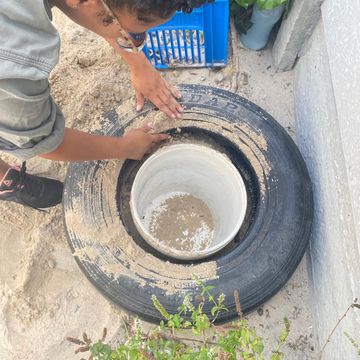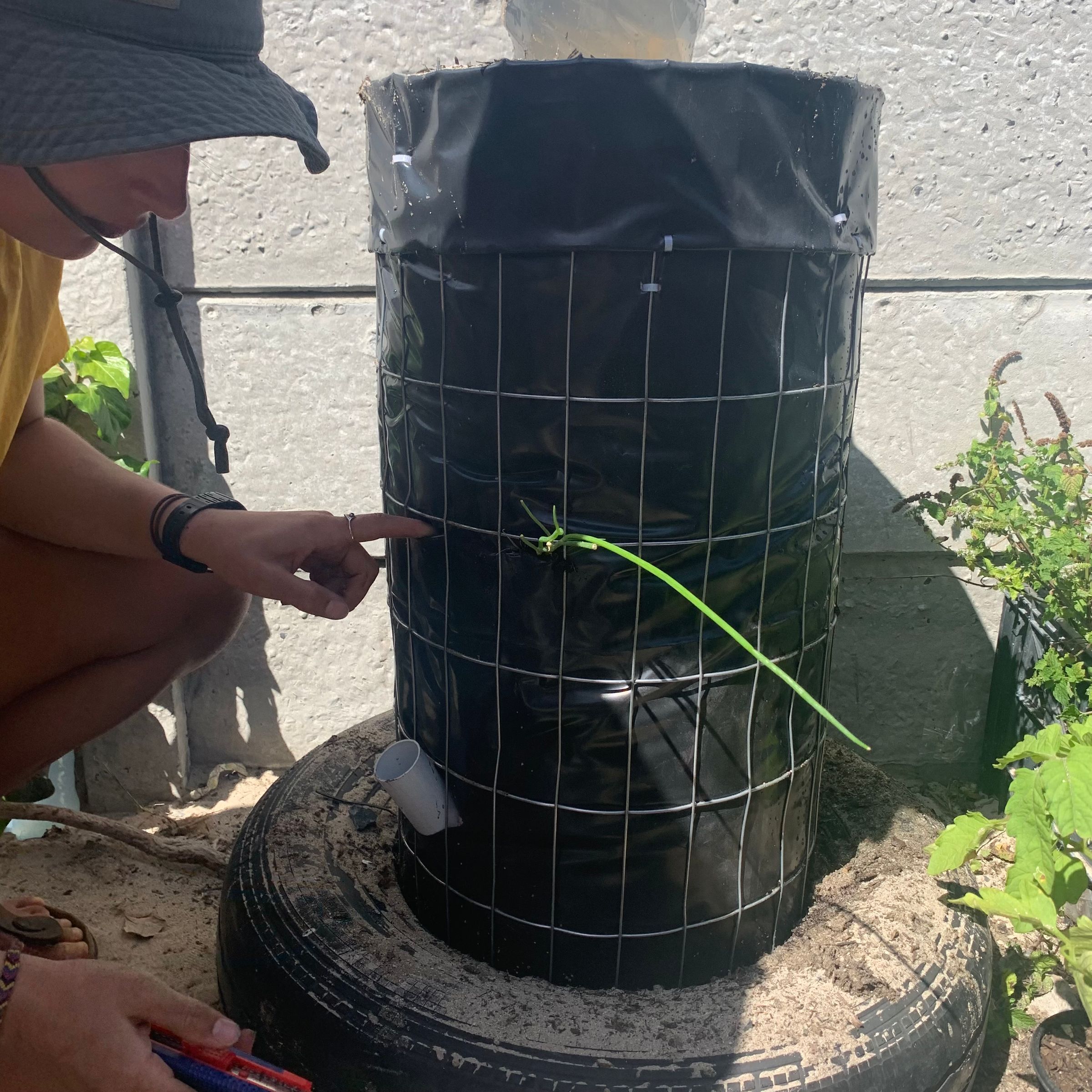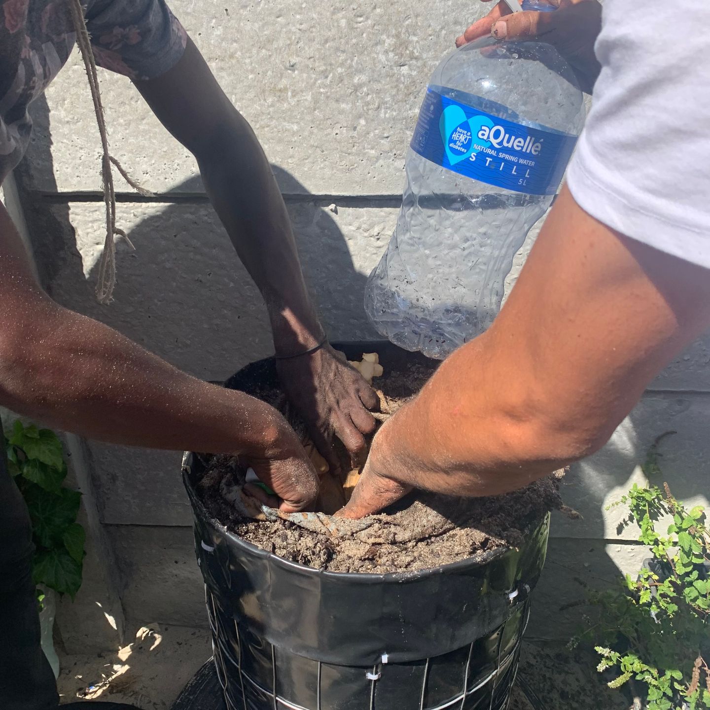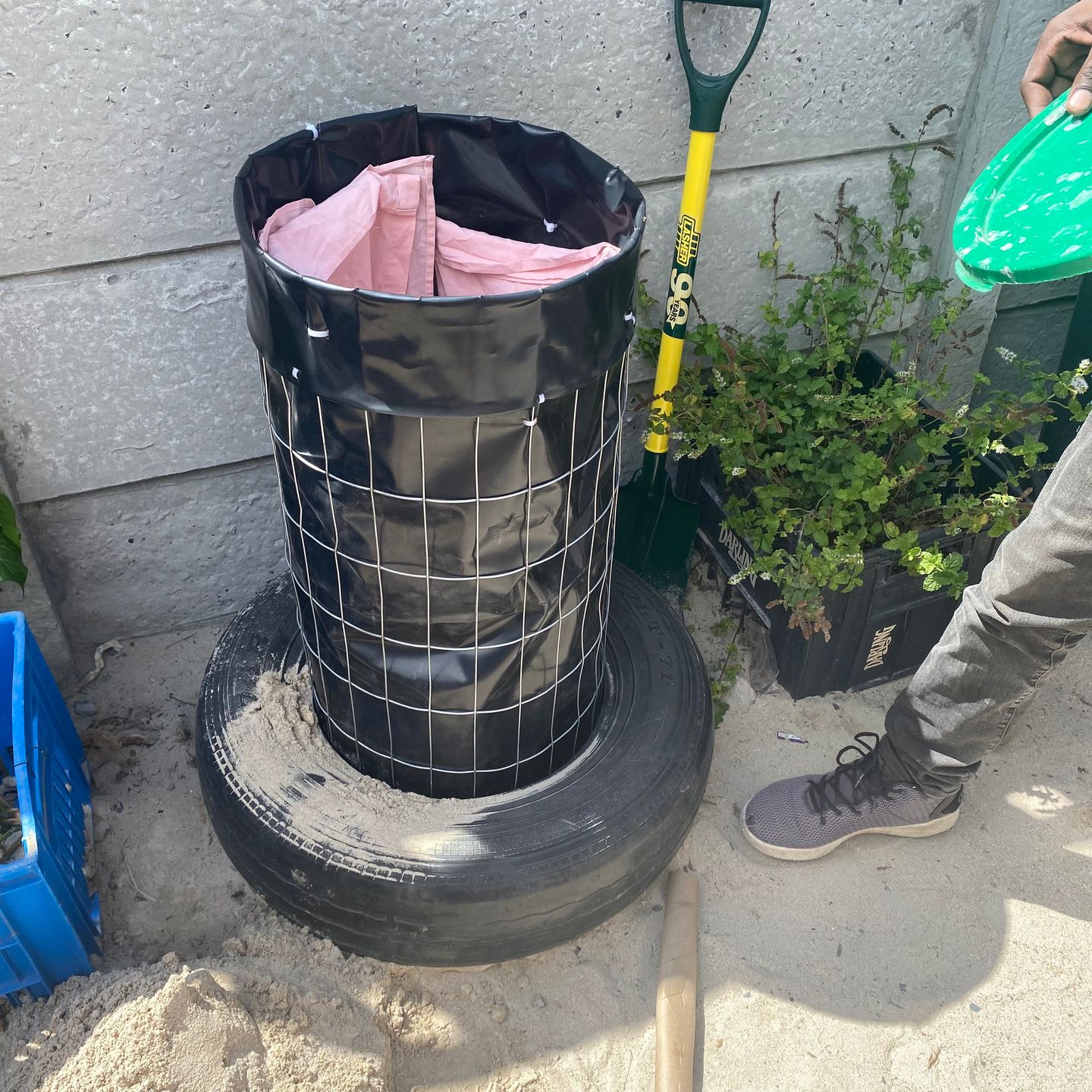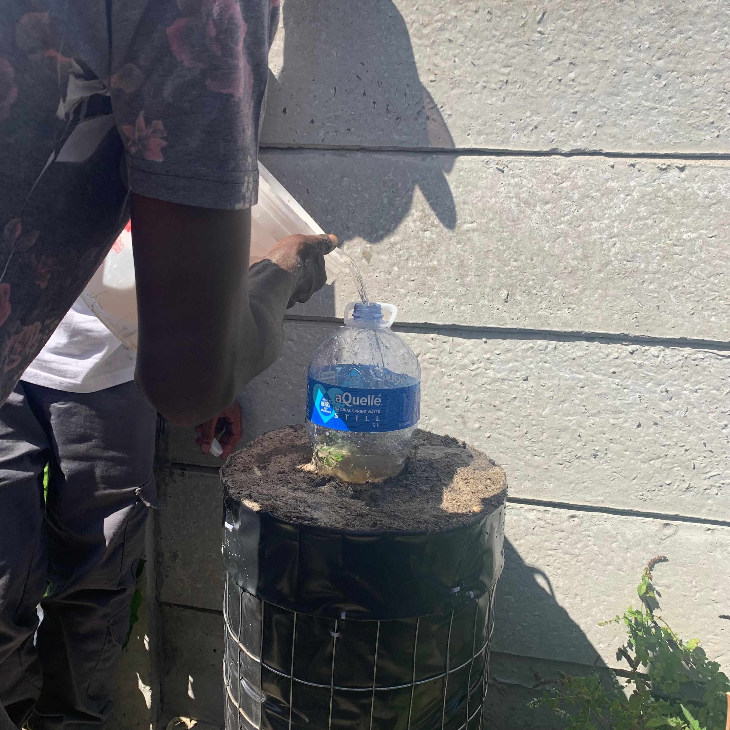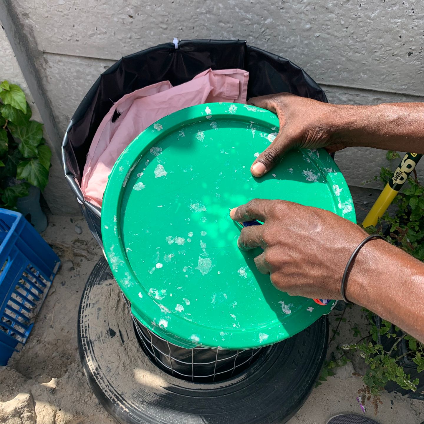 Place the lid on your bucket. The pipe should reach the bottom of your bucket.