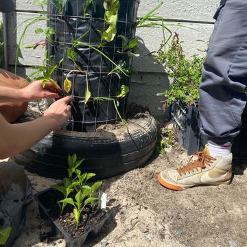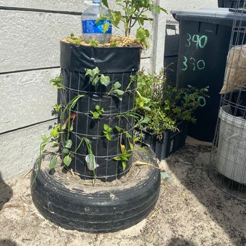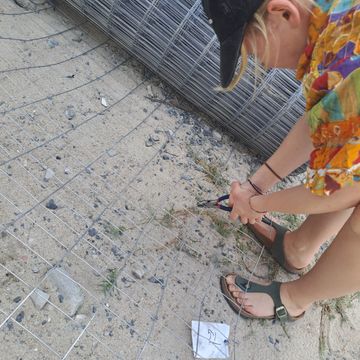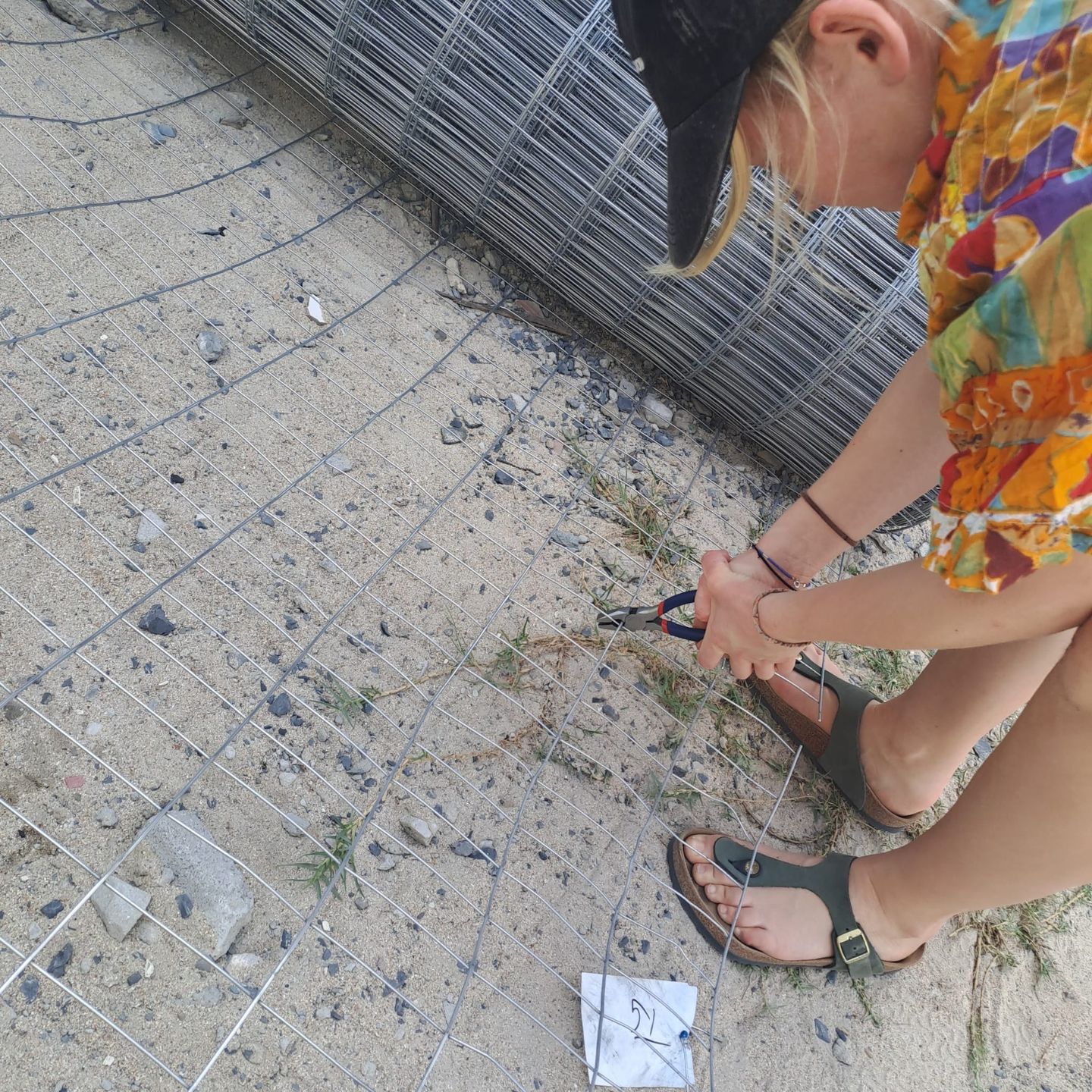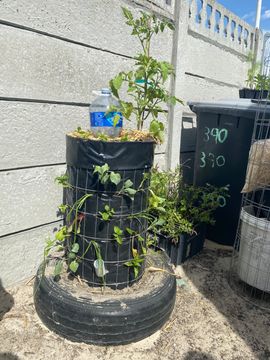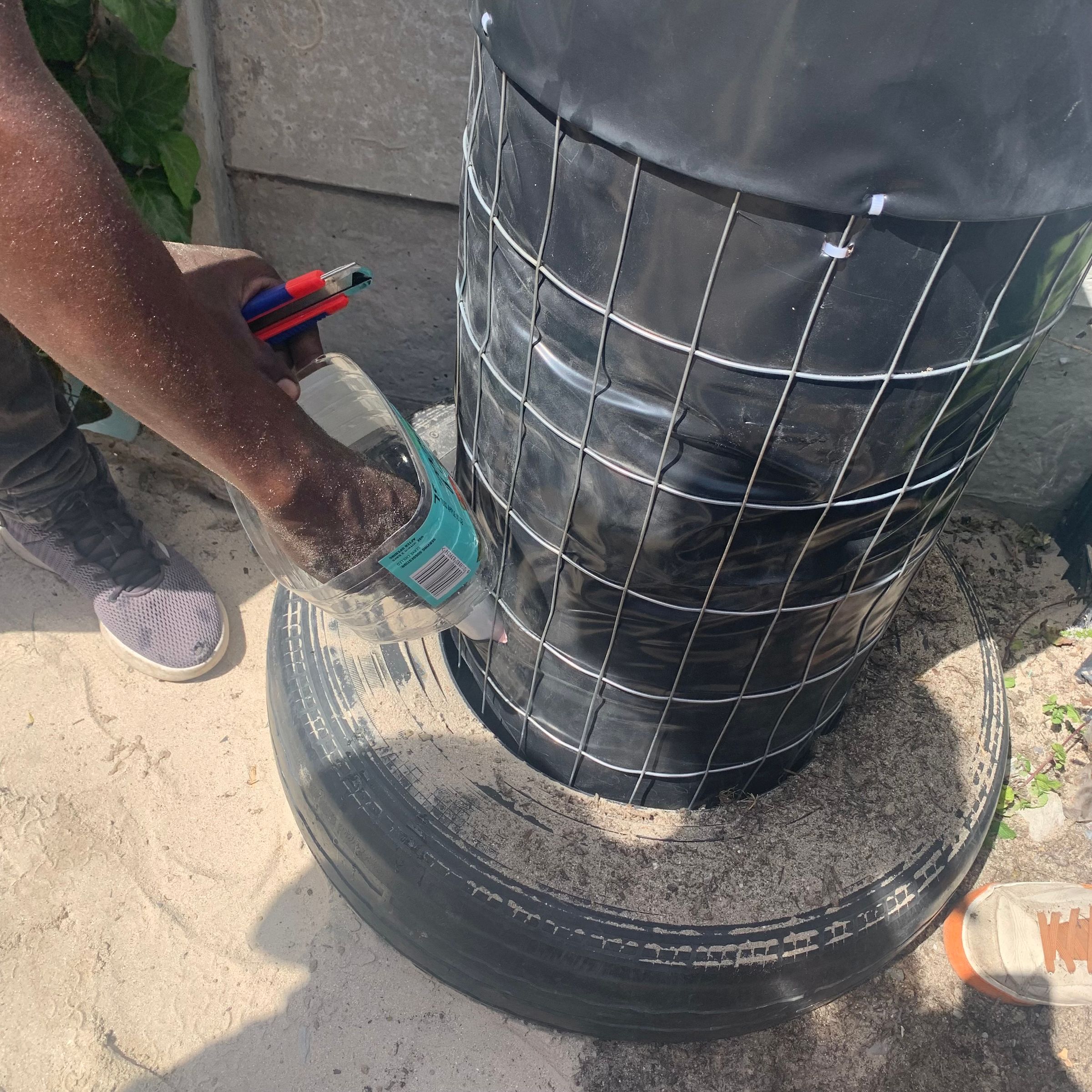 Use the cutter and the cable ties. Your plastic sheet should be wrapped around the upper end of your wire mesh.
