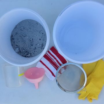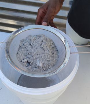 Sieve the ash into a clean bucket or bowl. After sieving you should have 4 cups of fine ash.