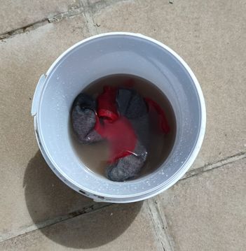 Use between half a cup and a cup of the liquid for your laundry. Don’t be surprised: The water will be very soapy but does not develop foam. Foam is not necessary to clean cloths. Look at this!