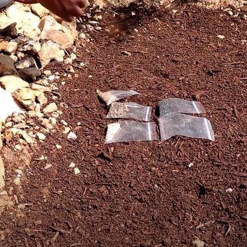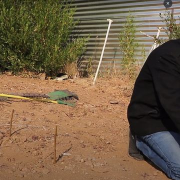 Draw the boundaries of the garden beds in the sand. Mark them with sticks.