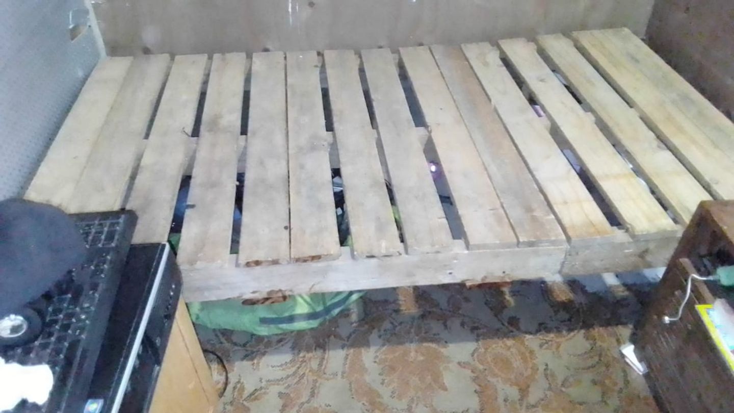 Use the wood scraps and the nails to join them on the bottom side of your future bed.