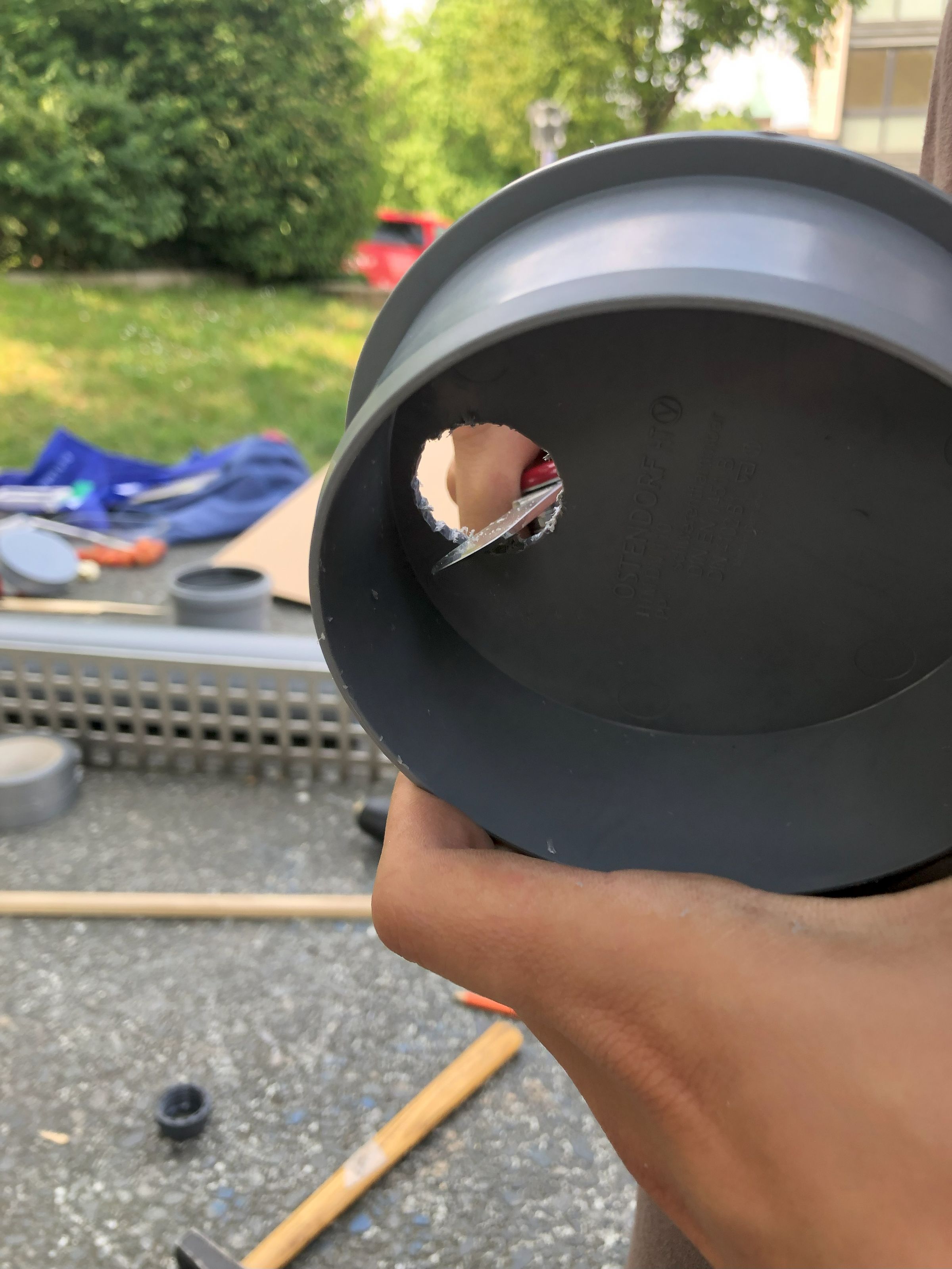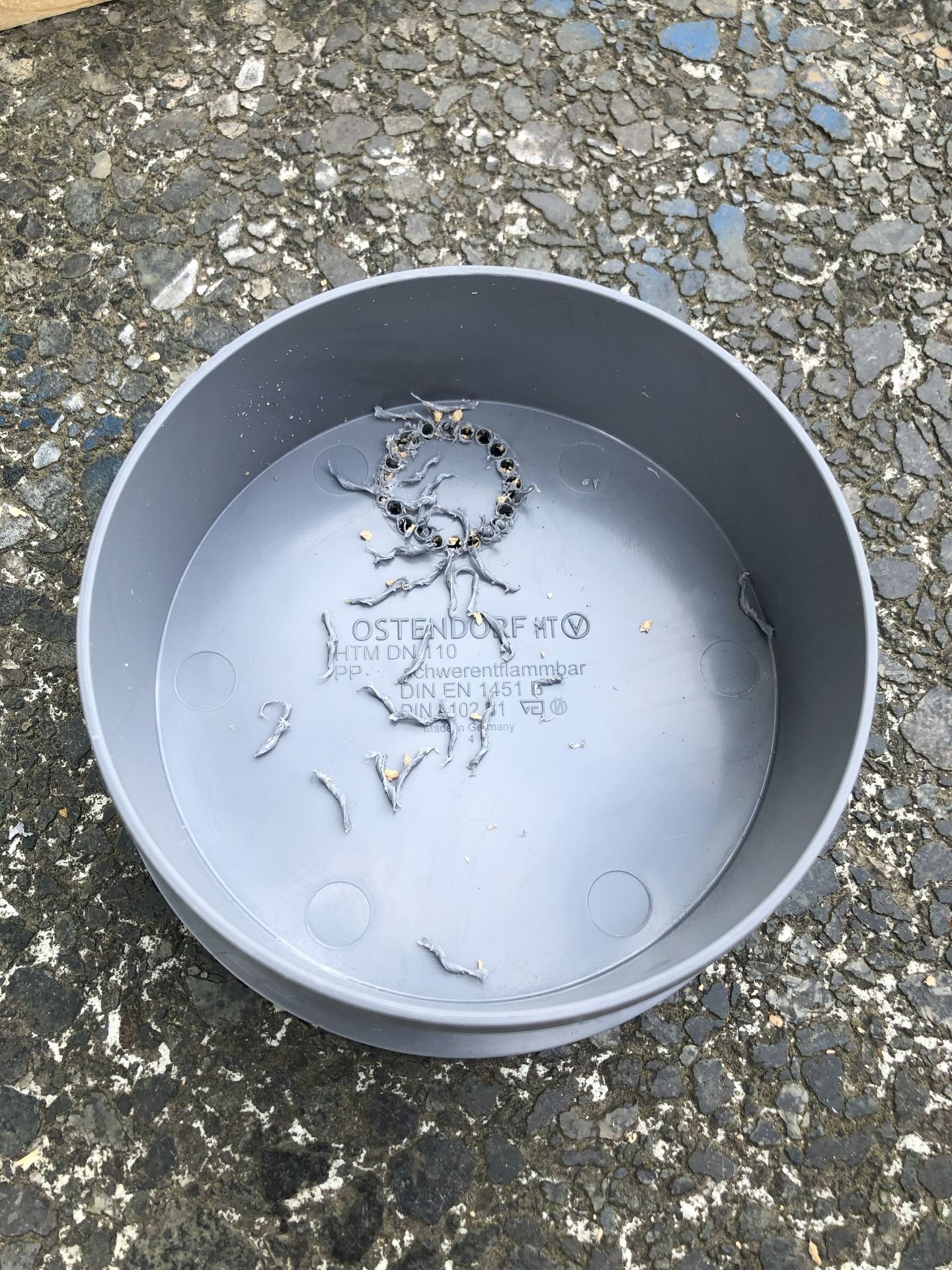 This is roughly how it should look after drilling. If the part cannot be removed from the lid, drill a few more holes.