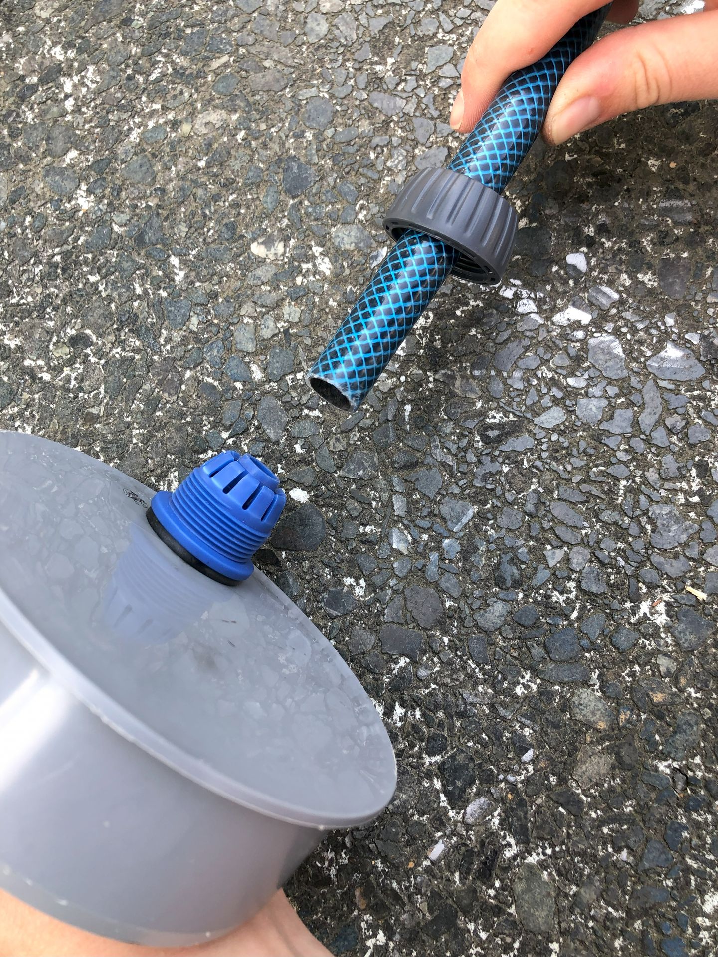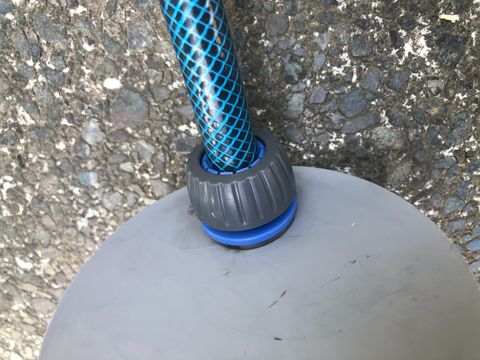 Put the hose on the inner part of the connector and screw on the outer part firmly to ensure a secure connection and prevent water from leaking.