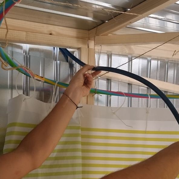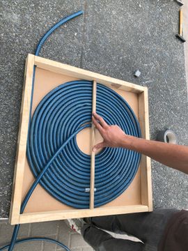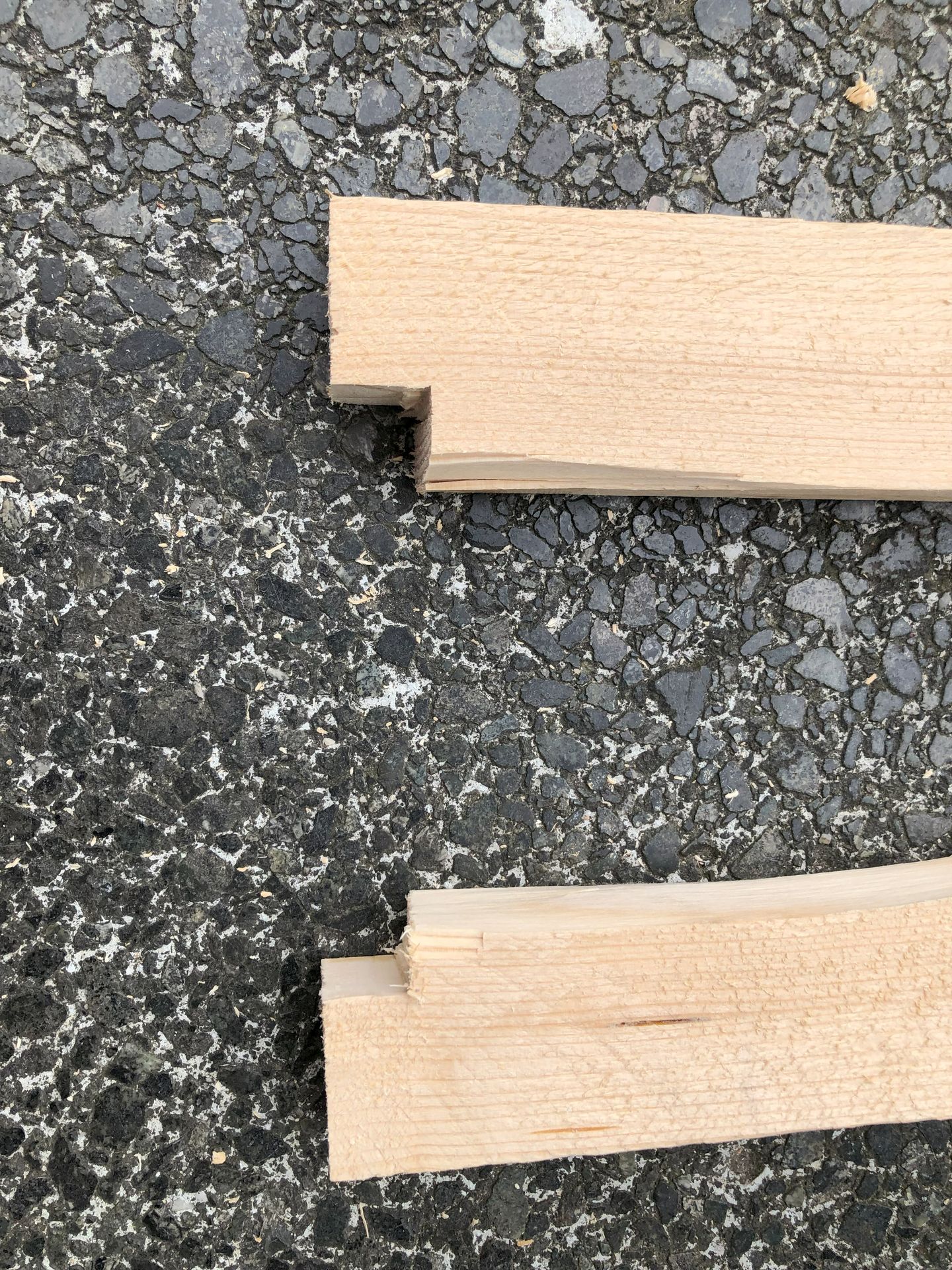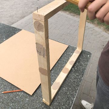 Ensure that the cut-out corner is large enough for the hose to fit through the hole, minimizing the escape of warm air. Cut the corners on the shorter wooden strips to guide the hose into the frame later.