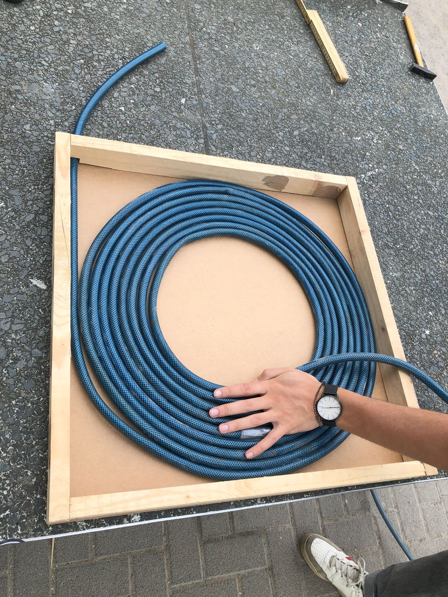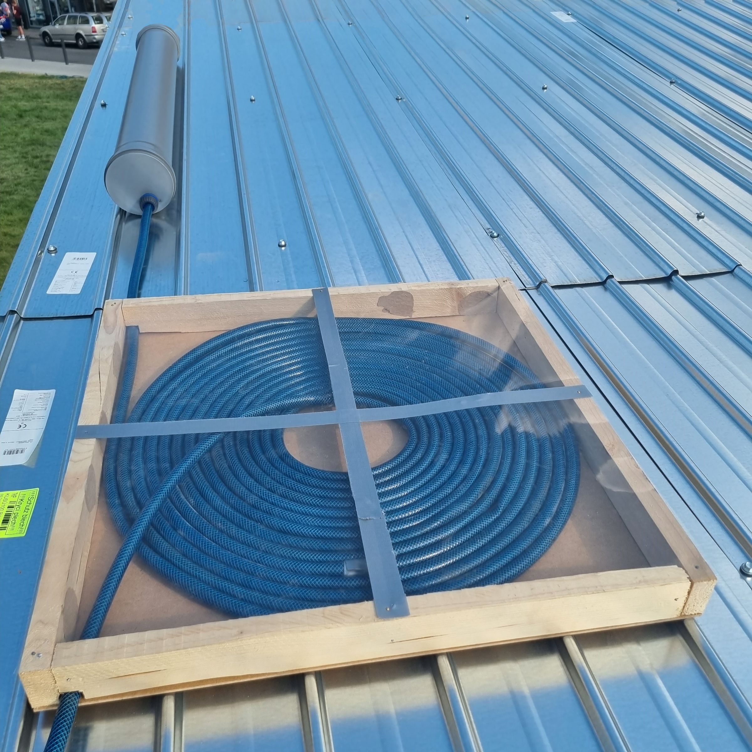 Keep the end of the hose open to allow the air to escape, ensuring smooth water flow through the hose. Ensure that your roof can bear the weight of the solar water heater, as it will become heavy with water. If your roof is not sturdy enough, consider adding an additional substructure for support. Safety is crucial!