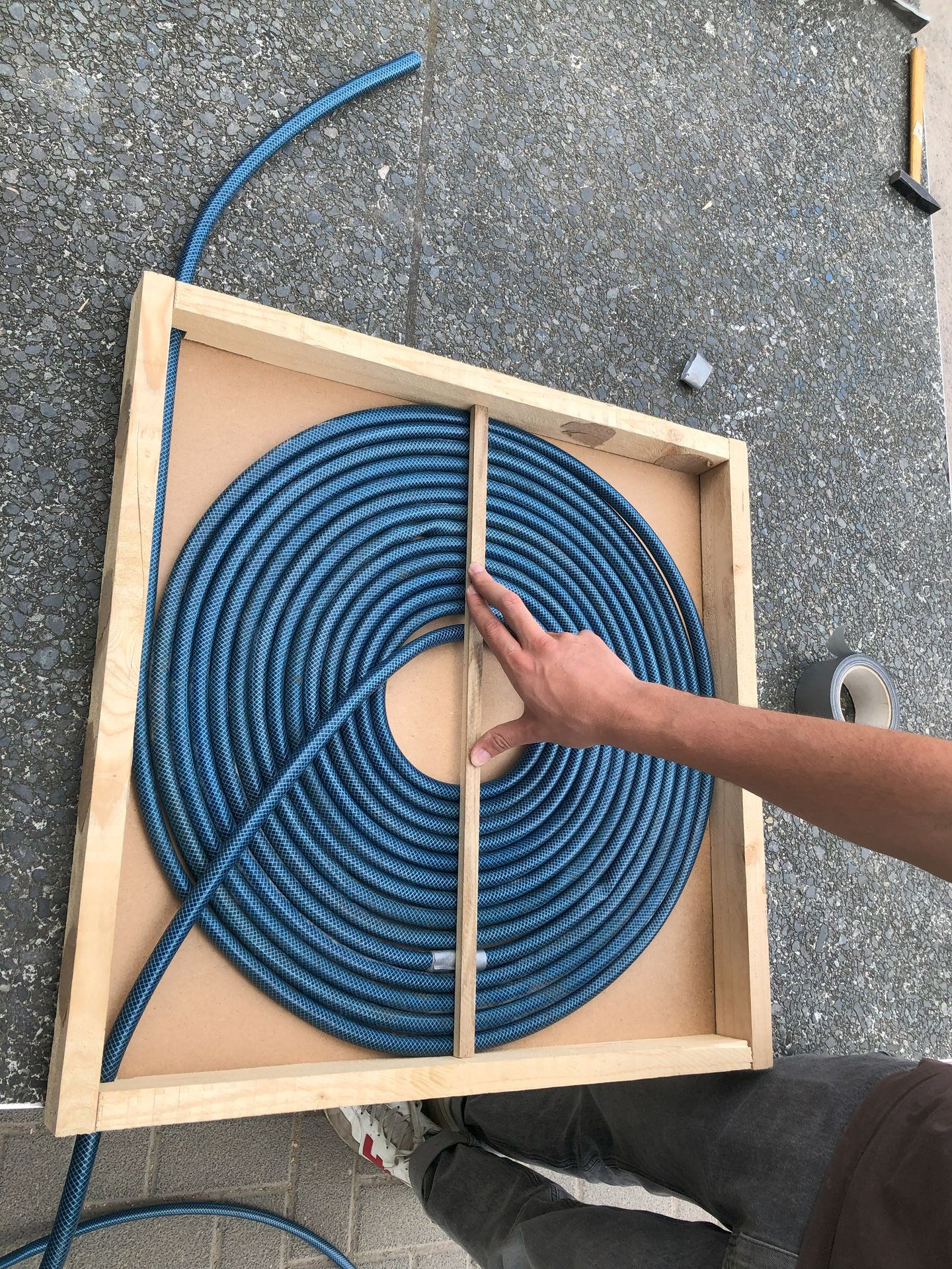 By using a wooden piece to hold it in place, you prevent the hose from losing its shape.