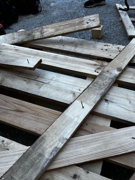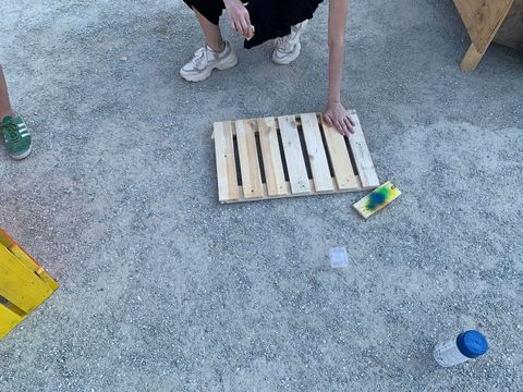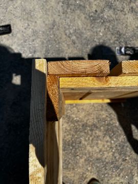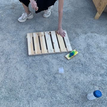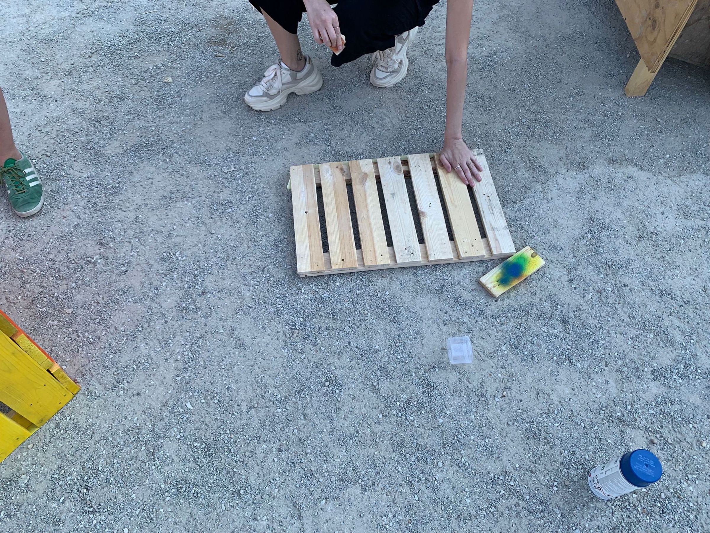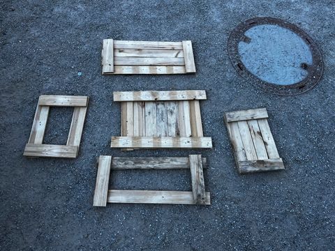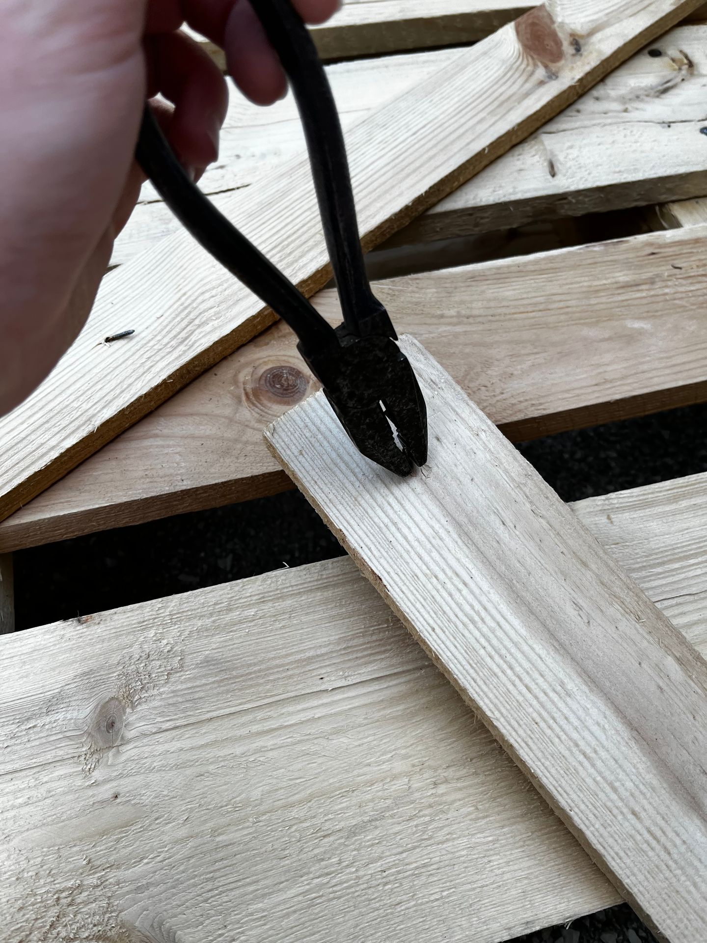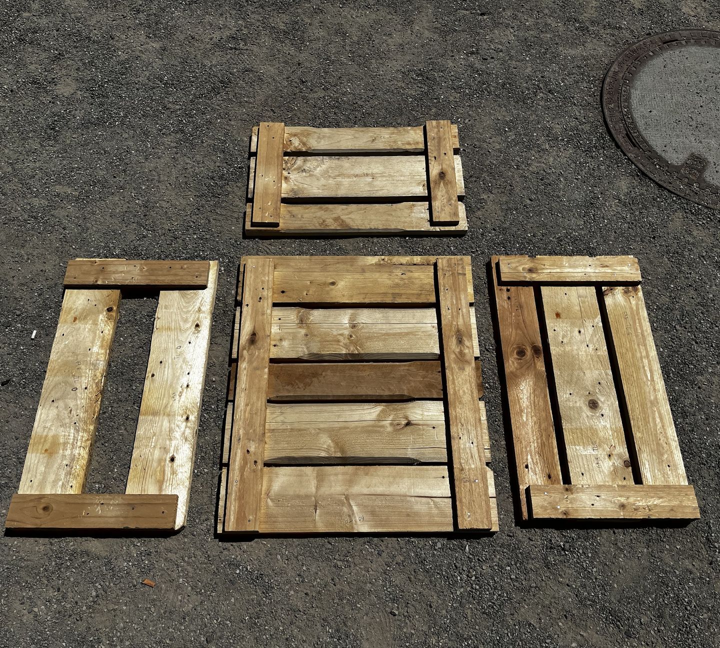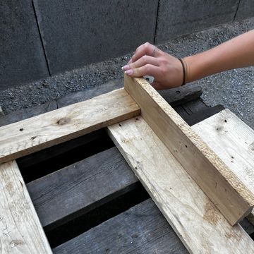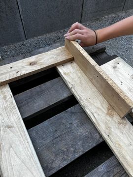For the short side of the table measure the pieces shown on the bottom right side of the picture: 2 x (70 cm - a) 2 x (40 cm -2xa) a is the thickness of your pallet wood.