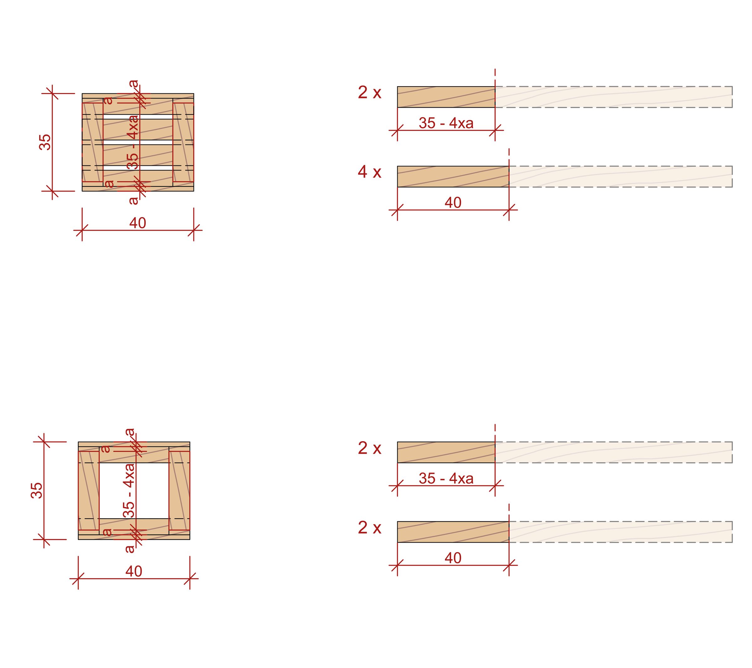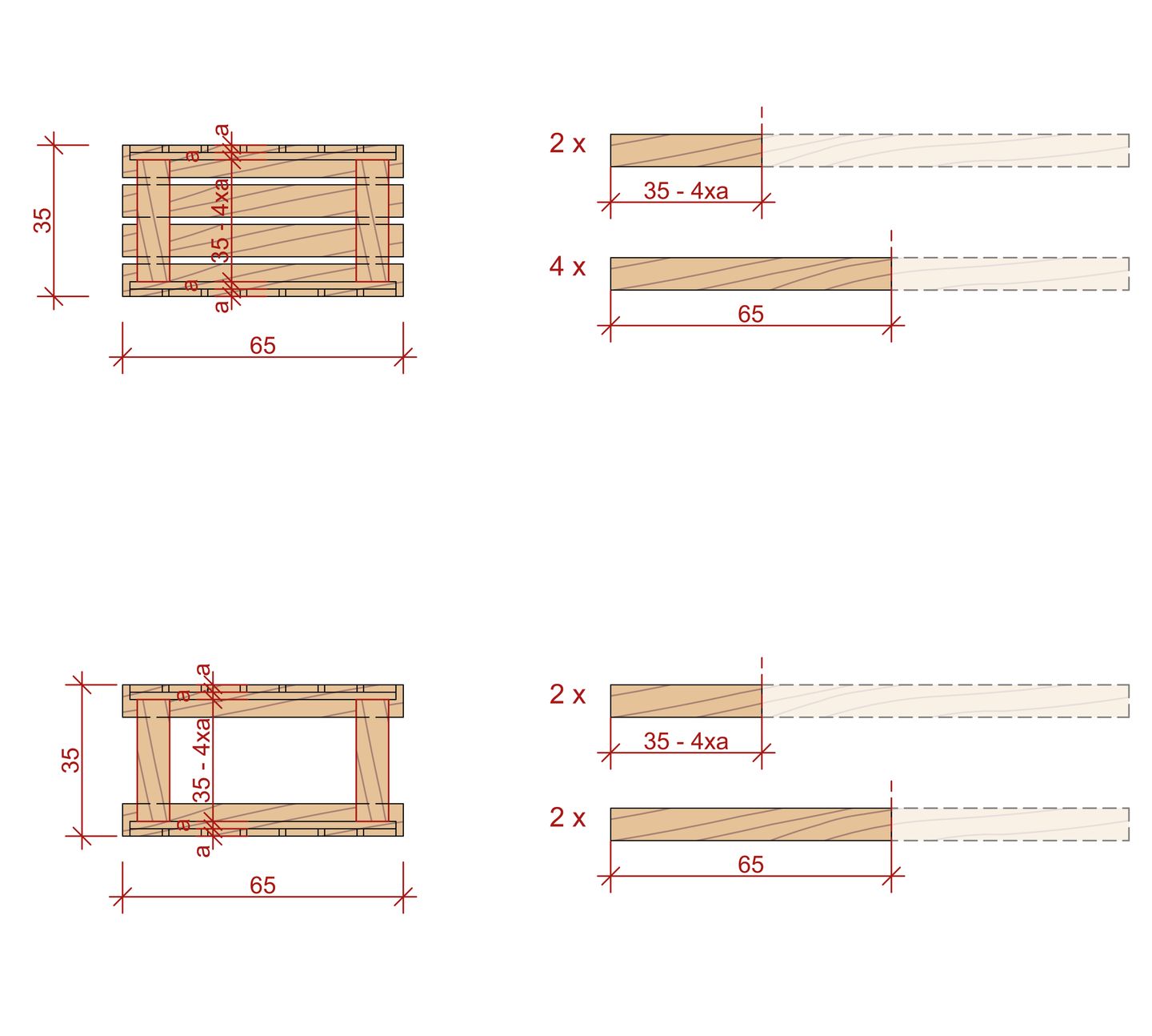 This is a more detailed drawing that highlights the right placement of the wood pieces. Pay attention to the overhang! ( the thickness of the wood- a)