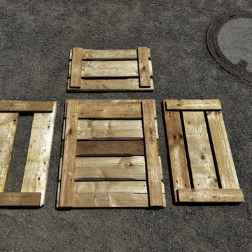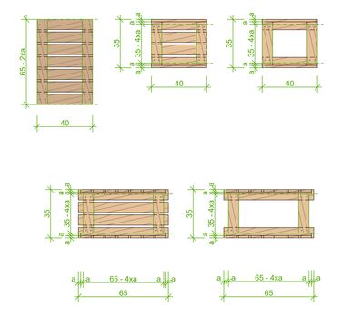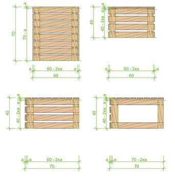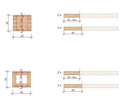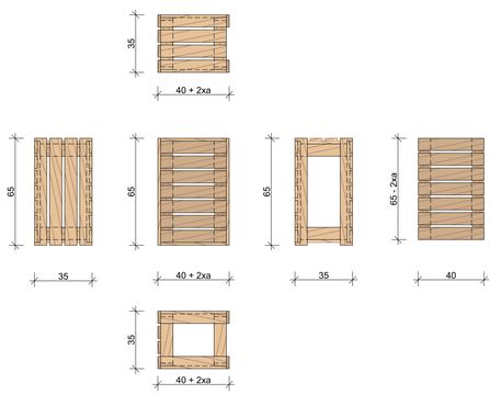 For the bottom of the box/chair you need the pieces shown on the right side of the picture. a is for the thickness of your pallet wood.