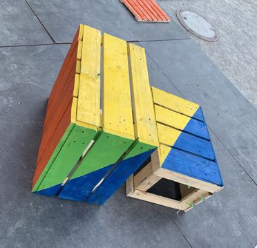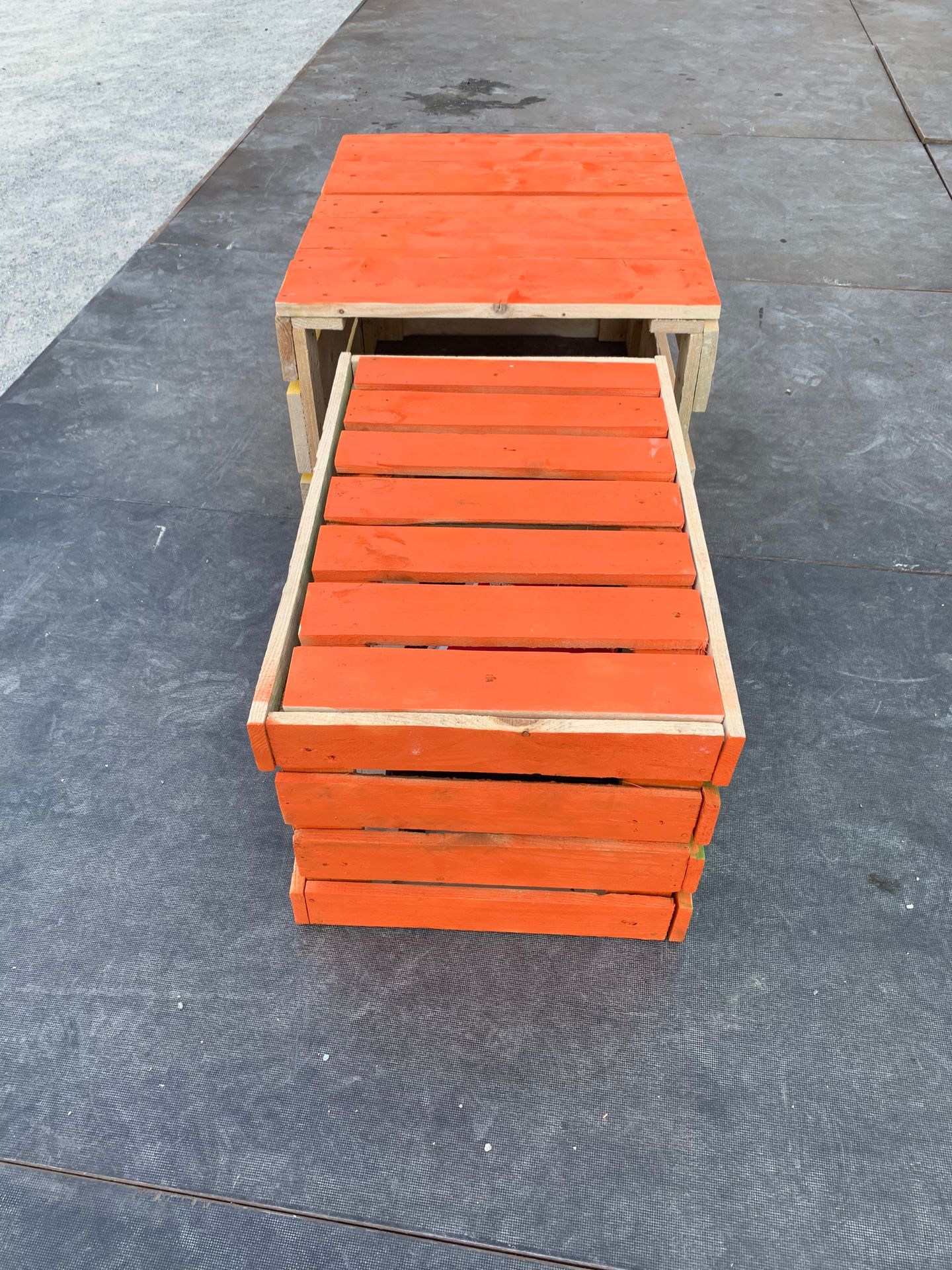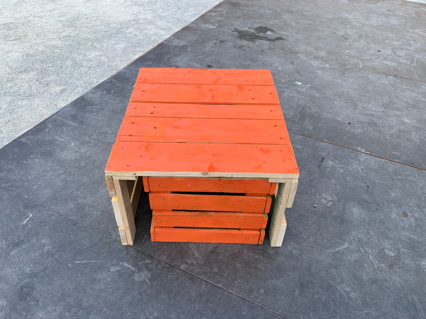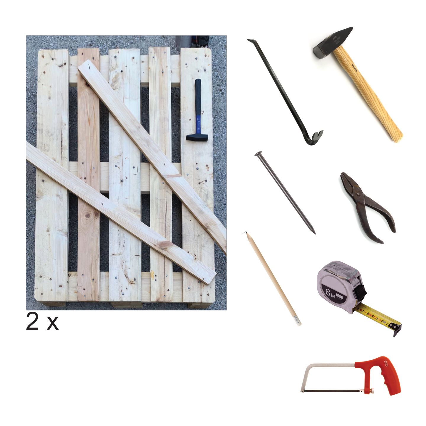The storage box is very similar to the table. Take the drawing, the nails and your hammer and connect the wood pieces. The drawing shows you all the information, the lengths and where you have to consider overhangs.