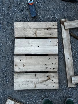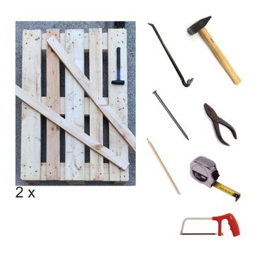 For the table top meaure the pieces shown on the top right side of the picture: 4 x 60 cm 2 x (40 cm - 2xa) a is the thickness of your pallet wood.