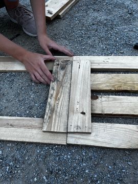 For the long sides of the table measure your wood pieces as shown on the right a is for the thickness of your pallet wood.