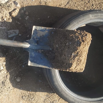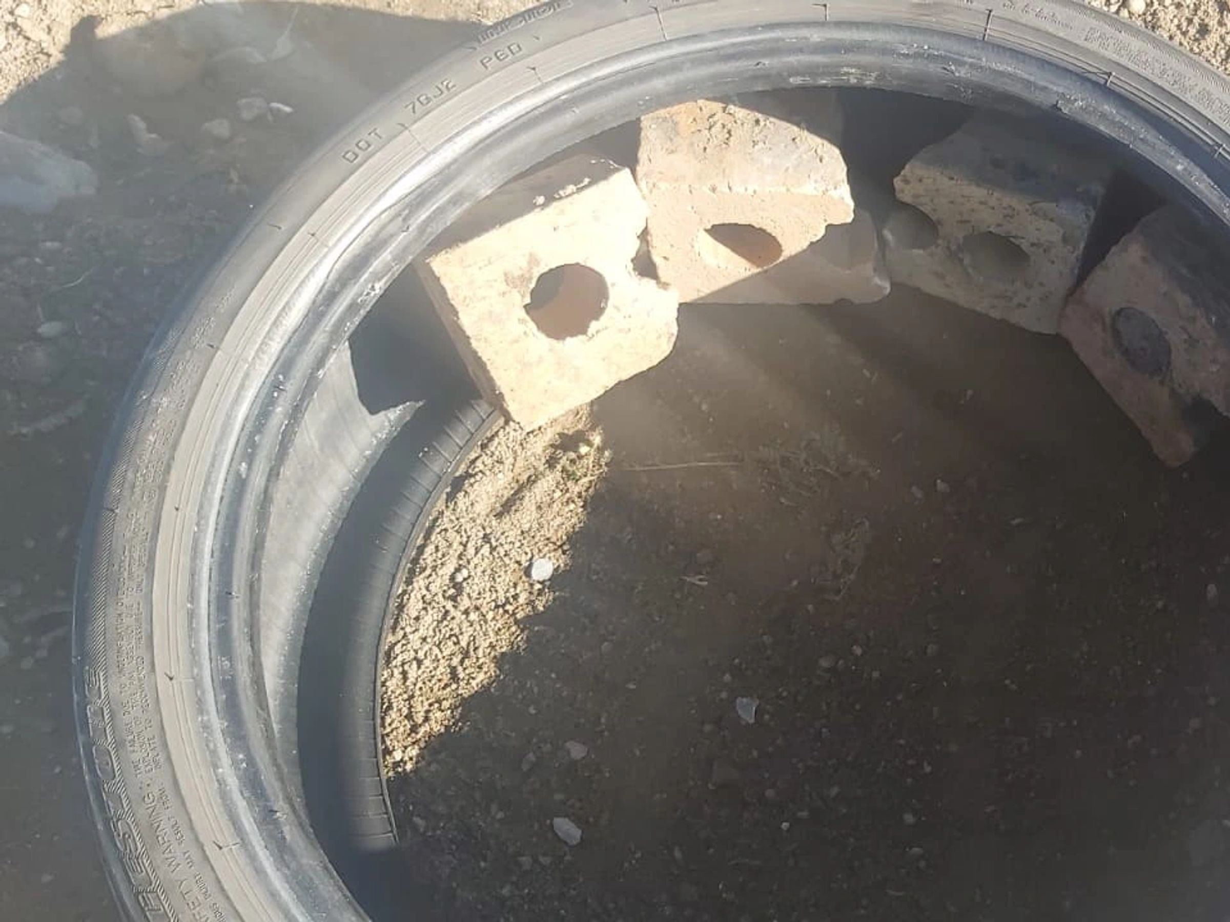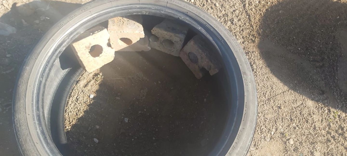 Optional: Put a plastic foil with little holes underneath the tyre and fix it with the bricks. That will hold the water / moisture in your planter.