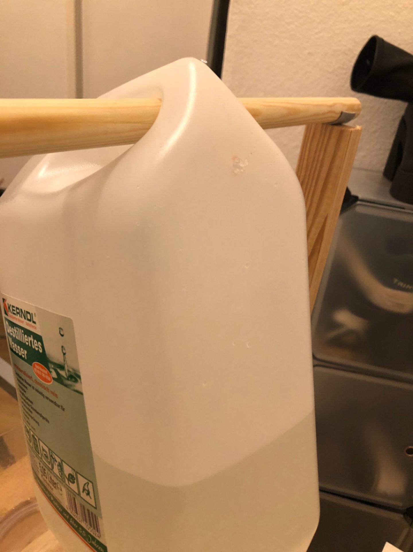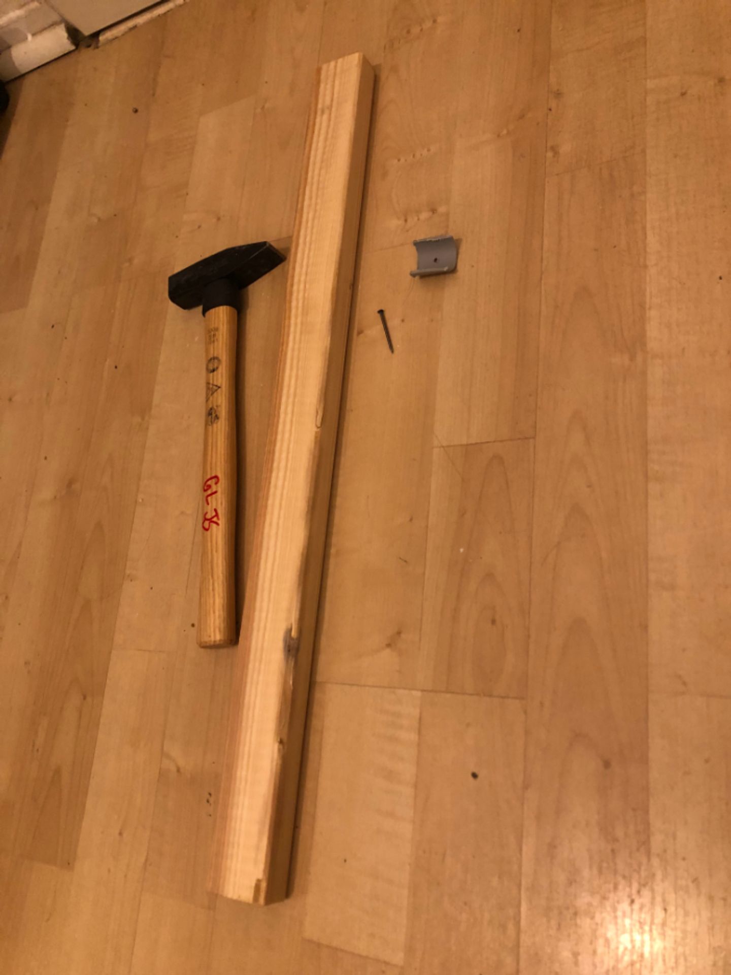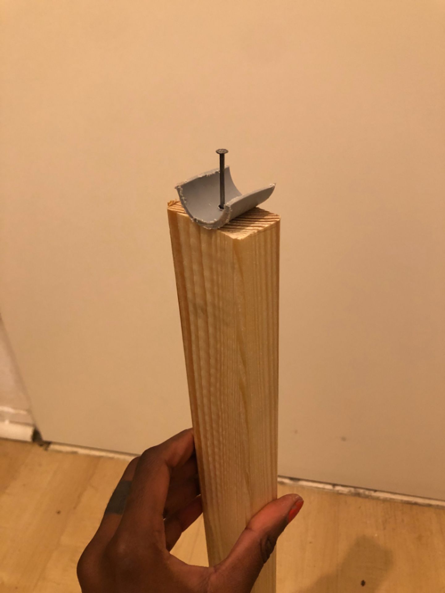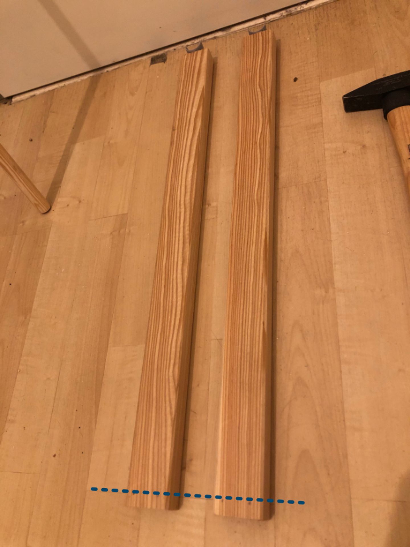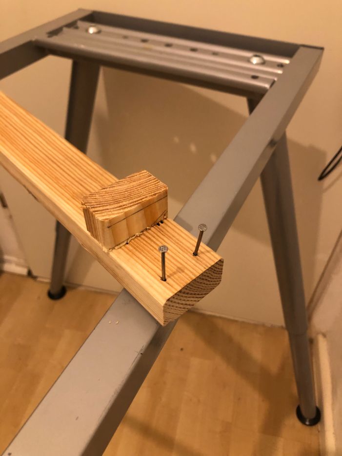 The nails and the wooden pieces will serve to hang the structure to the table or the kitchen module where the tap will be. If this doesn’t work, you can also nail the planks directly onto your furniture.
